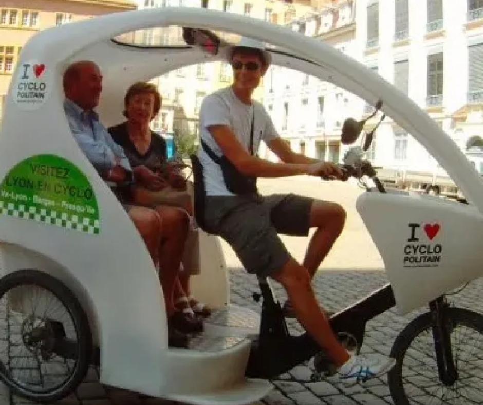 Comfortably seated in the back of our electric pedicabs, enjoy a visit in the heart of the historic districts of Lyon, with a local guide.